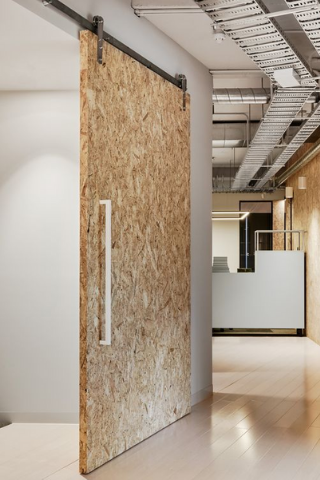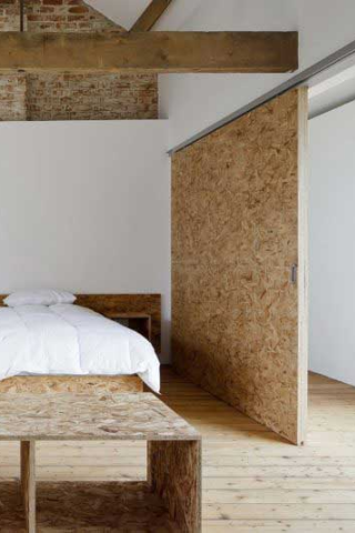 Composés de lamelles de bois résineux encollés les panneaux OSB s’invitent désormais dans nos intérieurs pour donner du style et un esprit récup. Il sont idéals pour la conception sur-mesure d’une porte coulissante suspendue.
