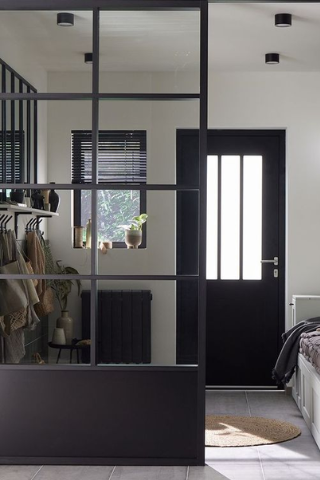Posée sur le sol ou sur un meuble, la verrière industrielle donne une belle sensation d’espace. Optez pour une porte vitrée ou semi-vitrée, elle illumine intensément votre pièce.