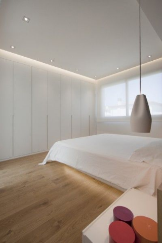 Dans la chambre, vous pourrez créer un faux plafond suspendu et intégrer de l’éclairage sur les côtés pour une ambiance intimiste et sobre.