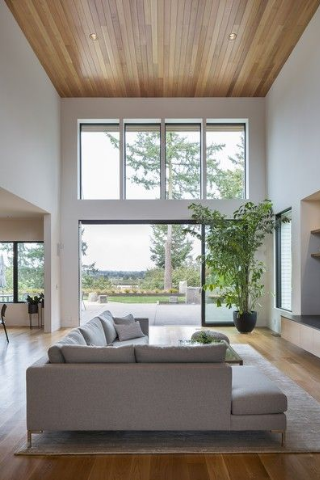 Dans le salon, différents choix s’offrent à vous, vous pouvez par exemple opter pour du lambris qui apportera du cachet à votre intérieur ou un faux plafond divisée délimitant ainsi les espaces.