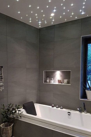 Dans la salle de bain, vous pouvez réaliser un faux-plafond avec des LED, qui grâce à une luminosité plus douce, rendra l’ambiance relaxante.