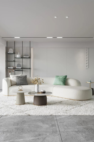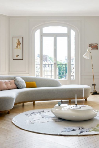 Pour dynamiser votre déco, choisissez des lignes à la fois nettes et modernes. Le canapé courbé illustre parfaitement cette tendance de l’asymétrie.