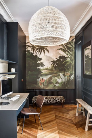 Particulièrement tendance, le papier peint jungle vient remplacer celui à fleurs. Qu’il soit panoramique, géométrique ou monochrome, il apporte du cachet à vos pièces de vie. Très sensible à l’humidité, il est préférable d’opter pour un autre revêtement dans votre salle de bain.