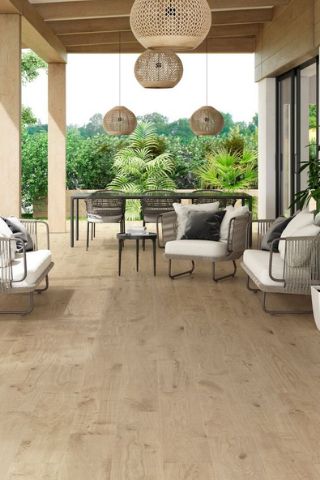 Si vous souhaitez un extérieur avec plus de cachet, pensez au carrelage imitation parquet. Pour harmoniser l’ensemble de votre aménagement, vous pouvez choisir une pergola en bois.