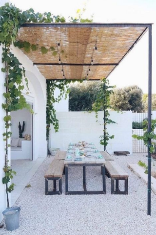 Il permet de conserver le cachet de l’ancien, et offre un extérieur particulièrement naturel. Pour profiter de votre terrasse et rester au frais, l’idéal est d’allier une pergola avec des plantes grimpantes.
