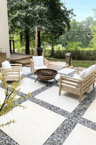 Associer les dalles en béton avec le gravier offre un extérieur unique et design. Vous pouvez également utiliser cette solution pour créer de magnifiques allées dans votre jardin.