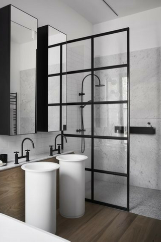 La verrière dans la une douche offre un apport de lumière. Idéale et tendance dans une douche à l'italienne.