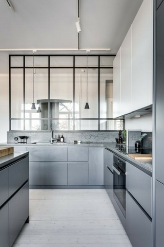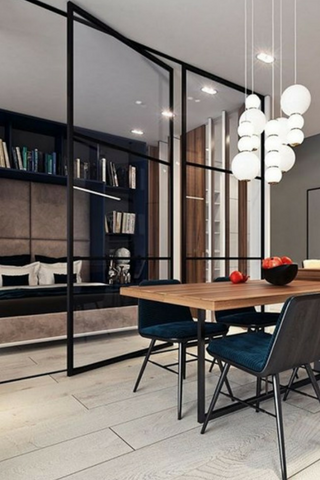 Si vous souhaitez obtenir de grand espace, une immense verrière métallique permettra d’agrandir les pièces d’un appartement moderne tout en apportant une touche industrielle.