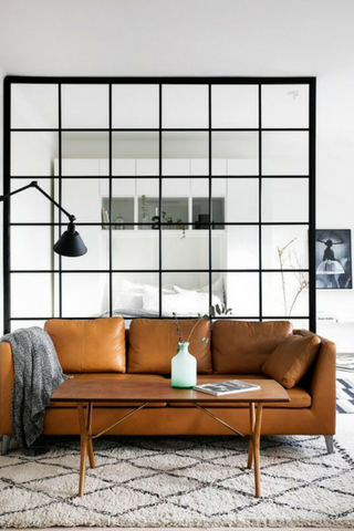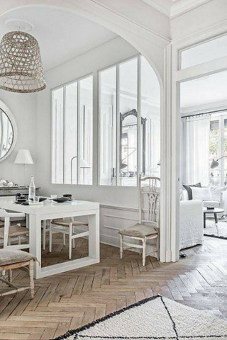 Une verrière vintage est parfaite pour redonner du peps à un intérieur. Sa grandeur lui permet de remplacer le mur et offre une belle séparation avec la salle à manger.