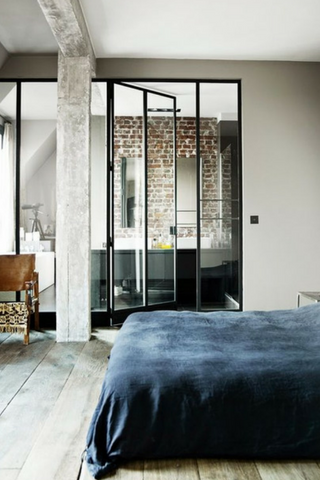 La verrière est idéale pour créer une salle de bain sans cloisonner les espaces. Elle permet de mettre en place une douche qui est le prolongement de la chambre.