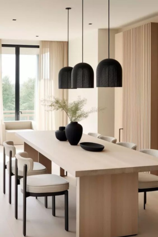 Si vous souhaitez un intérieur sobre et naturel, vous pouvez l’adopter avec le style Japandi. Afin de contraster avec les nuances claires, pensez à ajouter des accessoires noirs ou en couleurs.